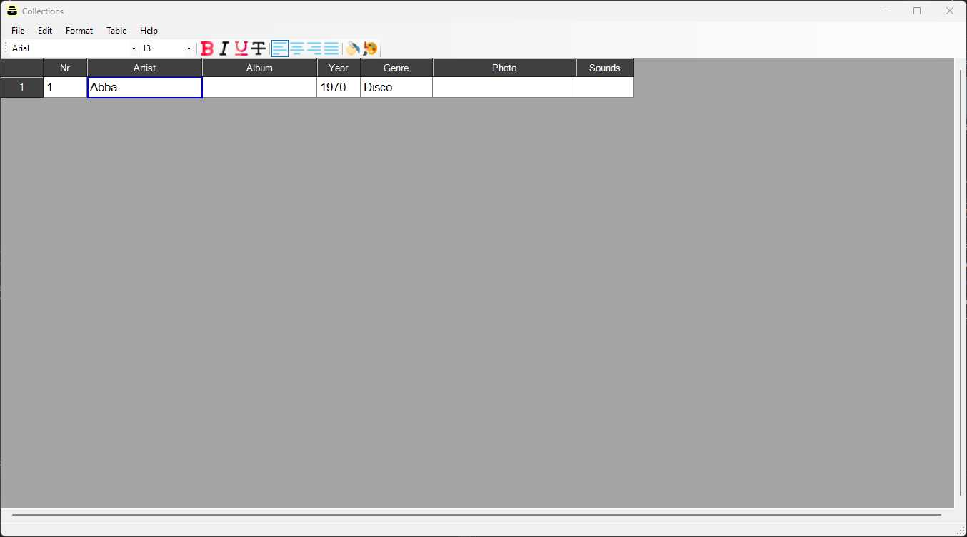 Collections is a database program for storing and using your data. By default, the program includes a database template for a music or CD collection. You can try it for 7 days, if you like the application, you can buy it. It costs 9.90 euros.