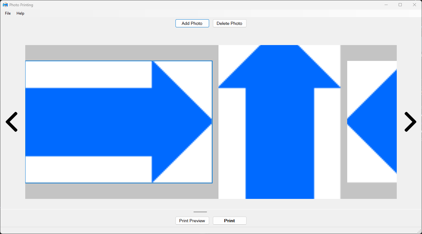 Photo Printing is a photo printing application. You can print photos on A4 photo paper. You can try it for 7 days, if you like the application, you can buy it. It costs 9.90 euros.