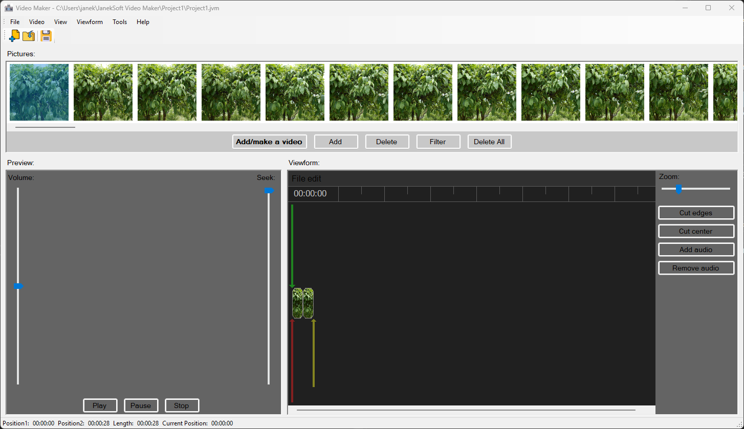 Video Maker is a video building program. You create video from images. You can change and edit the finished video. The program is simple and user-friendly. You can try it for 7 days, if you like the application, you can buy it. It costs 9.90 euros.